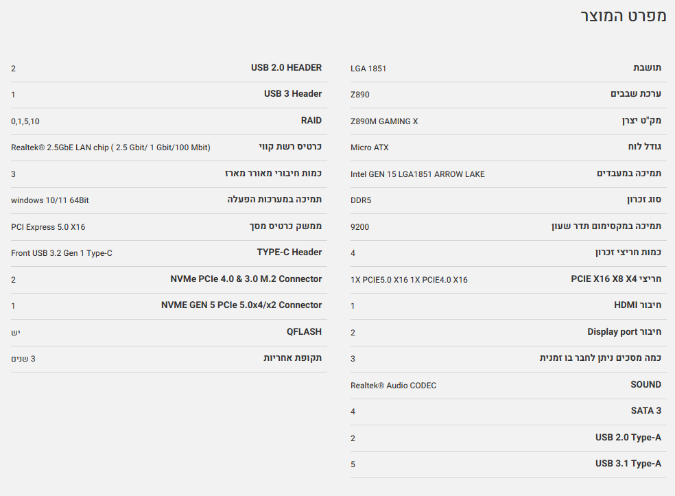 לוח לאינטל דור 15 Gigabyte Z890M GAMING X mATX 2.5GbE LGA1851