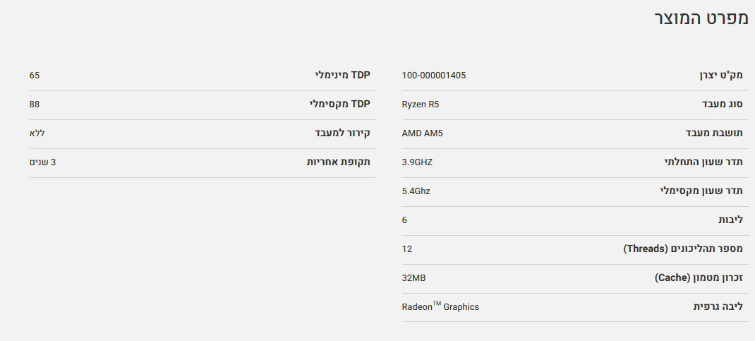 מעבד AMD Ryzen 5 9600X Tray up to 5.4GHz 6 cores Radeon Graphics
