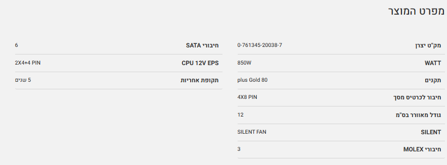 ספק כוח ANTEC ATOM G850 120MM Silent Fan Semi-Modular 80Plus Gold
