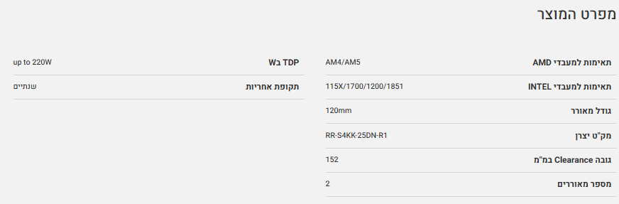 קירור אוויר למעבד Cooler Master 212 Black X Duo 220W TDP AMD/INTE