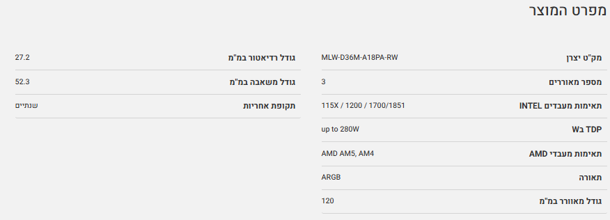 קירור למעבד i7 i9 Ryzen