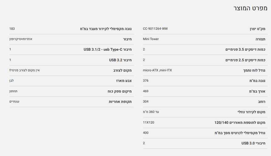 מארז Corsair 2500D AIRFLOW Mini-Tower mATX White NO FANS