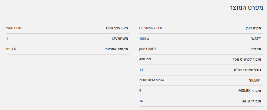 ספק לבן Corsair RM1000x SHIFT 80 Plus Gold Fully Modular ATX3.1