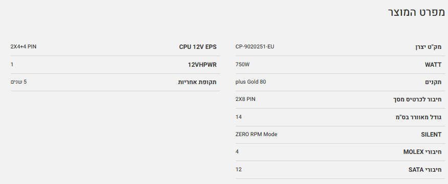 ספק CORSAIR RM750x SHIFT 80 PLUS Gold Fully Modular ATX