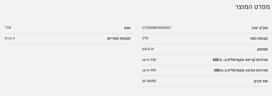 דיסק פנימי Crucial BX500 2TB 3D NAND SATA 2.5-inch SSD