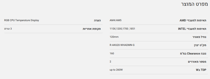 קירור למעבד Deep COOL AK620 DIGITAL 260W TDP 162mm RGB WHITE
