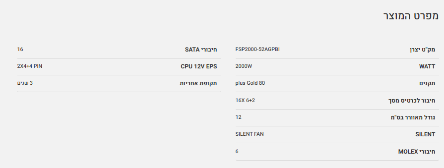 ספק כוח FSP 52AGPBI 2000W 80 Plus GOLD Full Modular 120mm