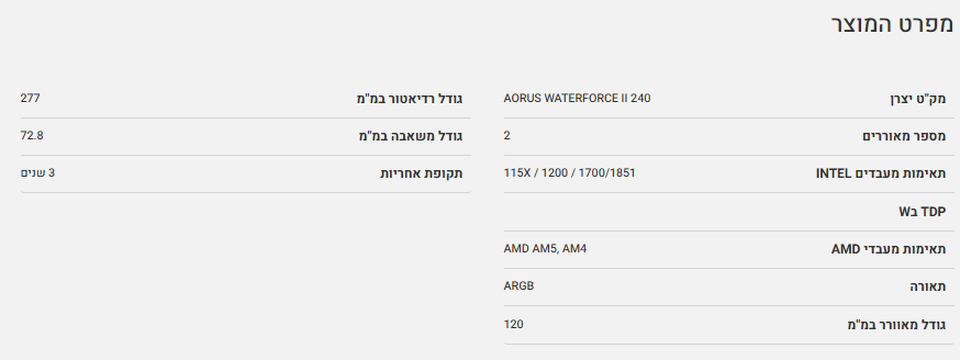 קירור נוזלי כפול Gigabyte AORUS WATERFORCE II 240 AIO 240mm ARGB