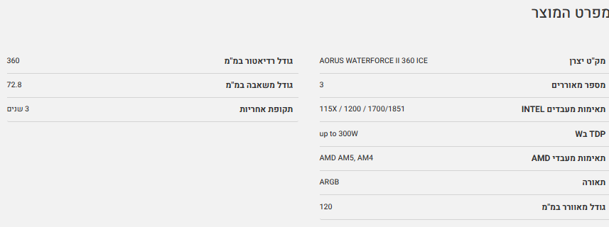 קירור לבן Gigabyte AORUS WATERFORCE II 360 ICE AIO ARGB REV2