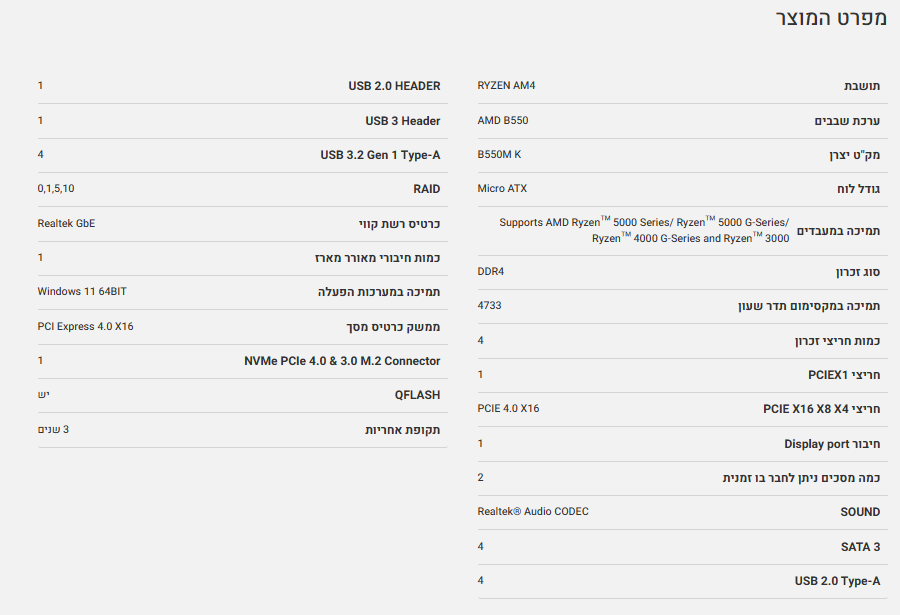 לוח אם Gigabyte B550M K DDR4 for AMD AM4 DP HDMI Micro-Atx