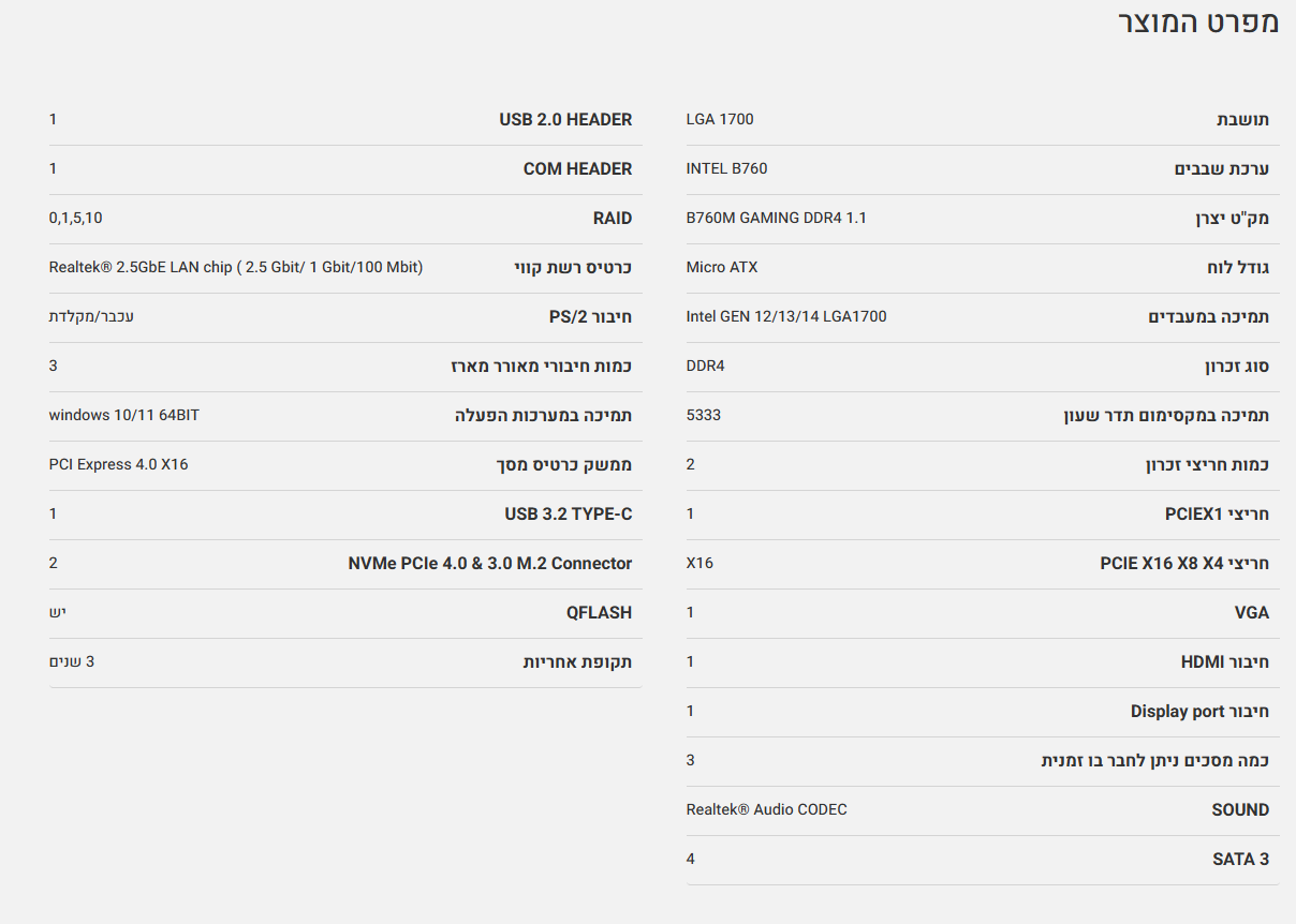 B760M GAMING DDR4 1.1