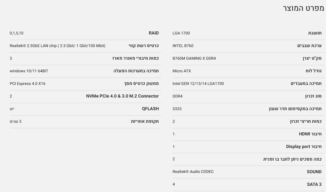 לוח Gigabyte B760M GAMING X DDR4 Micro-ATX LGA1700