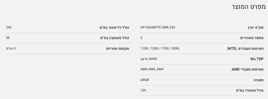 קירור נוזלי כפול Gigabyte Gaming 240 2XARGB 120MM Fan Black