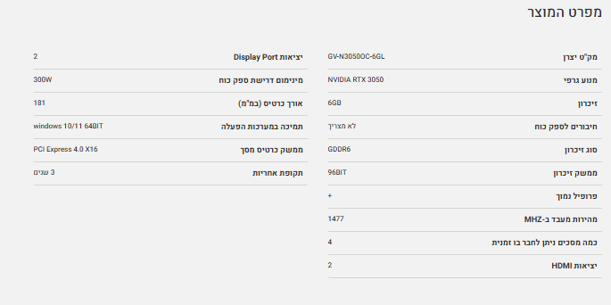 כרטיס מסך Gigabyte GeForce RTX 3050 6GB Low Profile