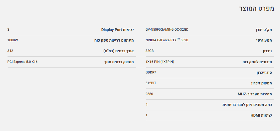 כרטיס מסך Gigabyte GeForce RTX 5090 GAMING OC 32G