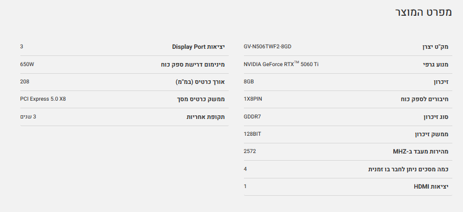 כרטיס מסך Gigabyte RTX 5060 Ti WindForce 2 8GB