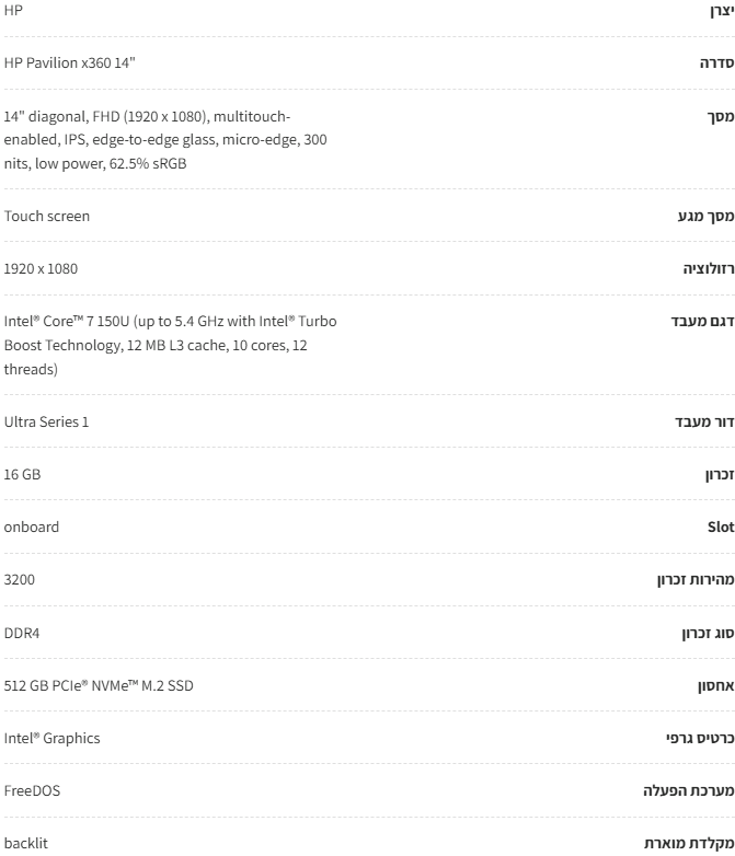 HP Pavilion x360 14" | 14 | Core™ 7 | 16 GB | 512 GB | Intel® Graphics | FreeDOS | HP 3 year 3 day Onsite 2 year warranty Notebook Service.