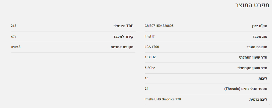 מעבד Intel Core i7-13700 Tray no Fan up to 5.2Ghz 65-219W TDP