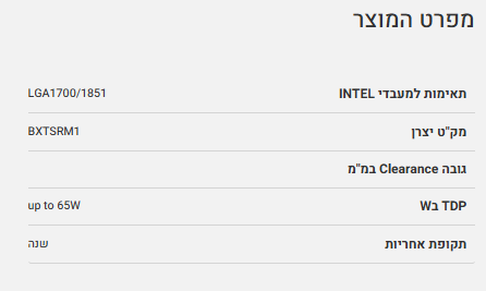 מאוורר אינטל מקורי Intel Laminar RM1 Cooler LGA1700 TDP 65W