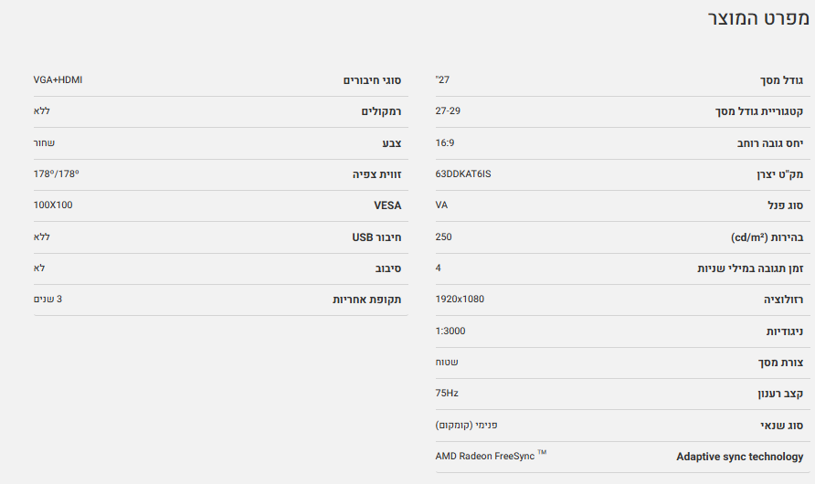 מסך Lenovo C27-40 FHD 4ms 75hz VA HDMI VGA