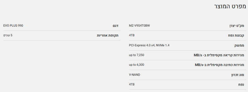 דיסק פנימי Samsung 990 EVO PLUS 4TB up to 7250 Read 6300 Write