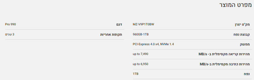 דיסק פנימי Samsung 990 PRO 1TB GEN4 up to 7450 read 6900 Write