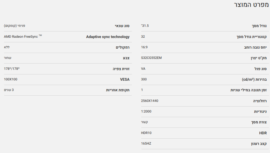 מסך קעור SAMSUNG G5 G55C Odessey 32 1ms QHD 165Hz FreeSync
