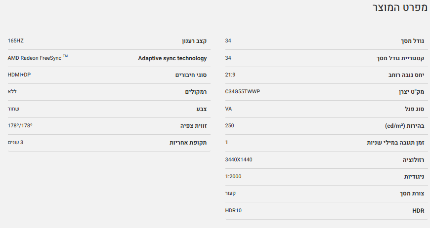 מסך Samsung Odyssey G5 Series Ultra WQHD 34 VA 1ms HDMI DP