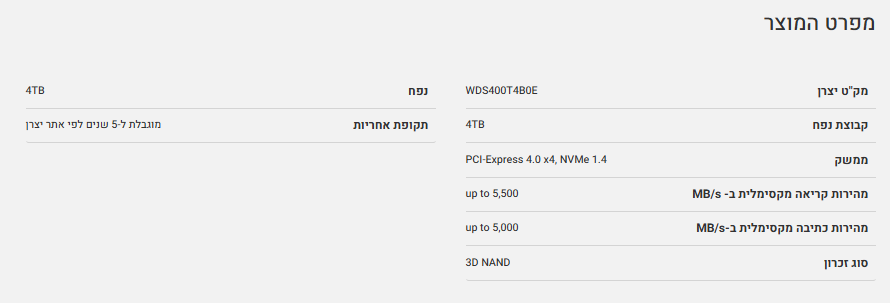 דיסק פנימי WD Blue SN5000 NVMe SSD 4TB PCIe Gen4X4 2280