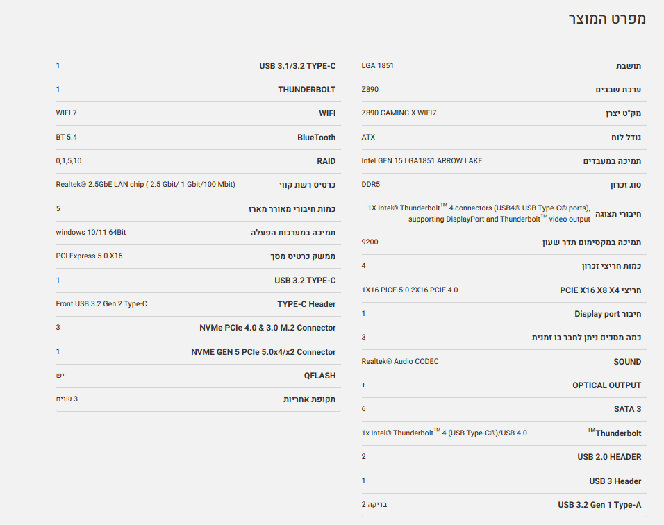 לוח לאינטל דור 15 Gigabyte Z890 GAMING X WIFI7 2.5GbE ATX LGA1851