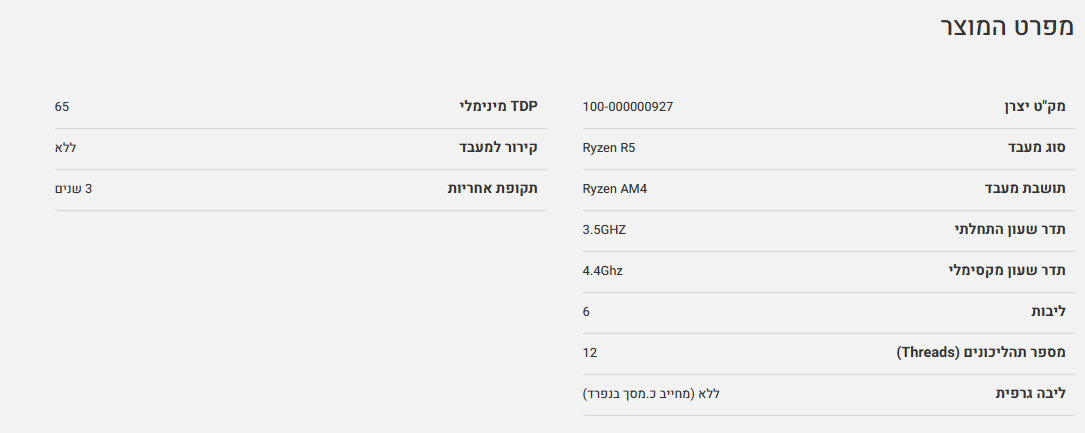 מעבד AMD Ryzen 5 5600 3.5Ghz 4.4Ghz AM4 Tray no Fan No GPU