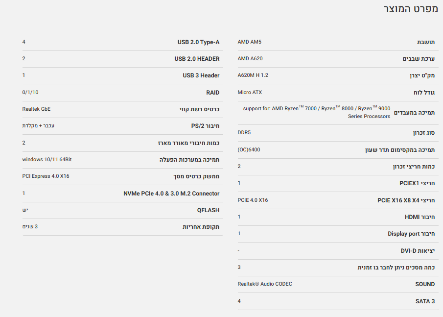 לוח למעבדי Gigabyte A620M H DDR5 1.2 mATX DP HDMI AM5 AMD