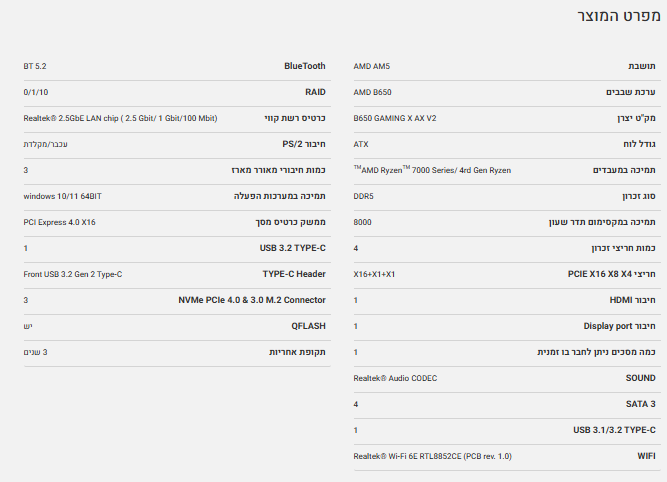 לוח Gigabyte B650 Gaming X AX V2 ATX WIFI BT AMD Zen4 AM5 DDR5